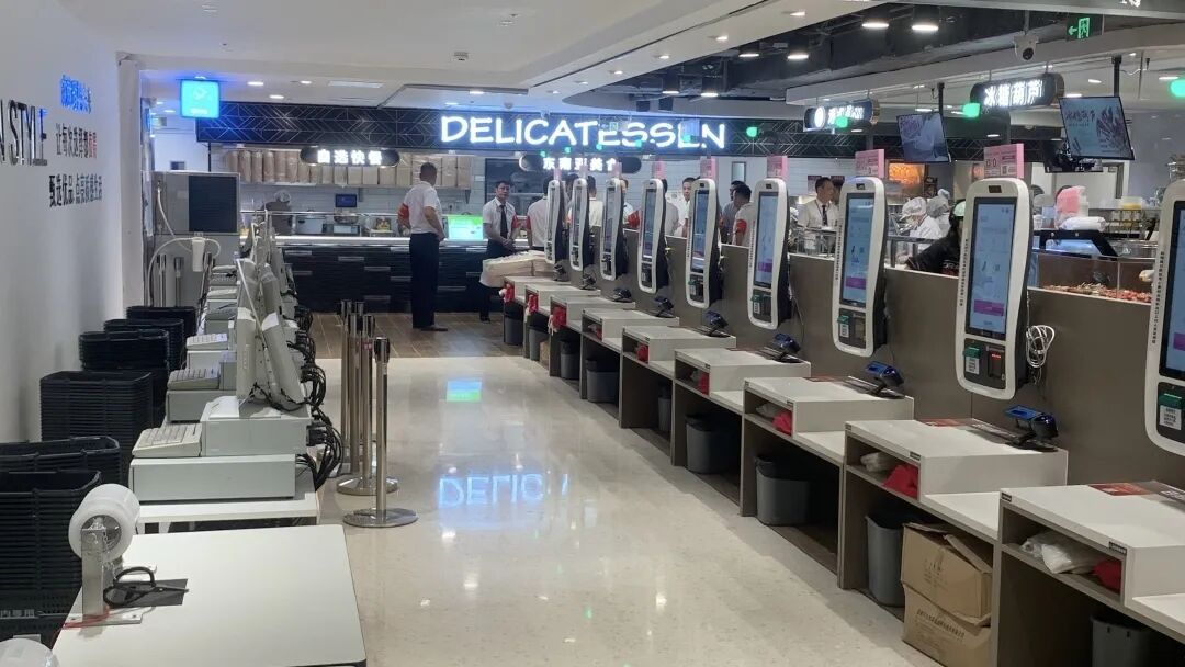 在绿色转型方面,永旺天河城店引入了一系列创新设备设施。时尚轻便的购物车、可调节座位的婴儿车、节省空间的自助收银台,无不体现对顾客购物便利性的考量。