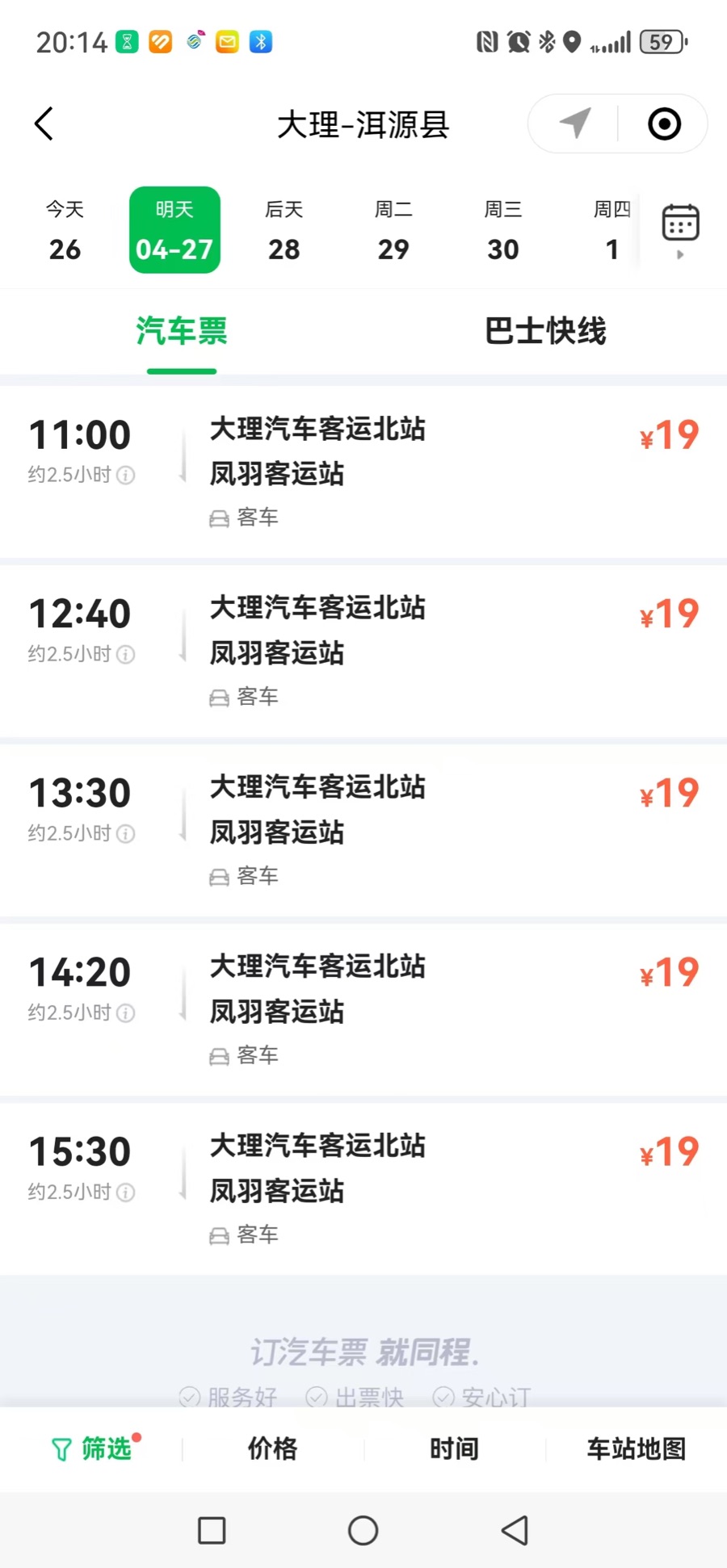 大理市到洱源县的汽车班车也没有因地震受到影响,全天候时段都有。