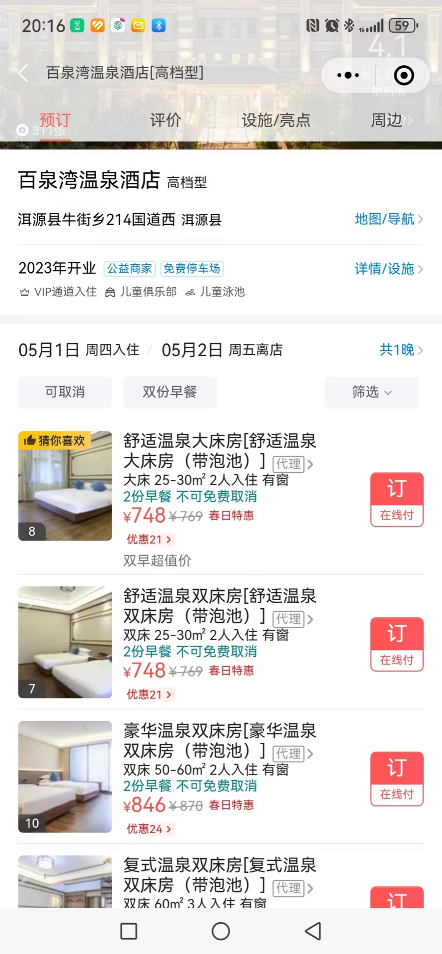 21世纪经济报道记者在大众点评看到,小长假期间,洱源县的温泉酒店不少显示低价房仅剩1间,百泉湾酒店的房价也已翻倍。由亚太(重庆)温泉与气候养生旅游研究院制定的《洱源县温泉产业发展规划(2021-2035)》显示,牛街现有78家酒店,其中温泉住宿37家。